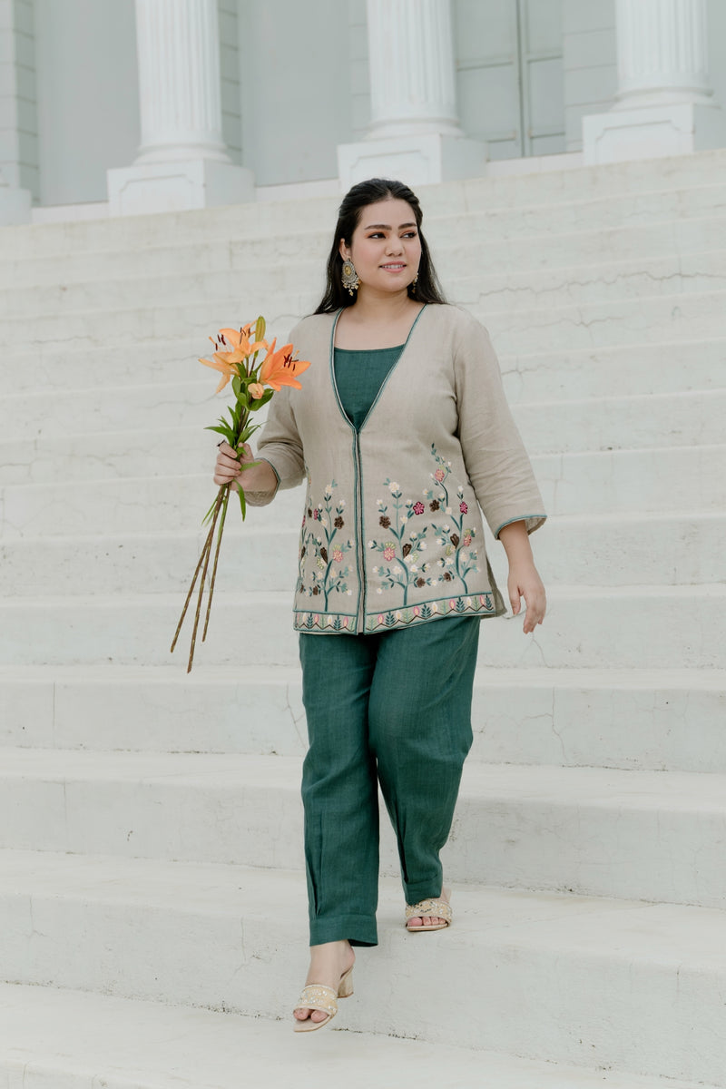 Short Kurta and Gharara Pants with Leaf Motif (Green)