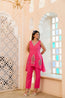 Unfold quiet luxury with a touch of bold charm in the RoseAura Set a sleeveless A-line kurta and pant co-ord in soft hot pink linen, elevated with vibrant pink floral embroidery with a tinch of white. The kurta features embroidery on the V-neckline and center hemline, adding a structured yet romantic touch. Paired with hot pink linen straight pants with a soft rose petal booti at the bottom, the set brings flow, color, and craftsmanship into every step.